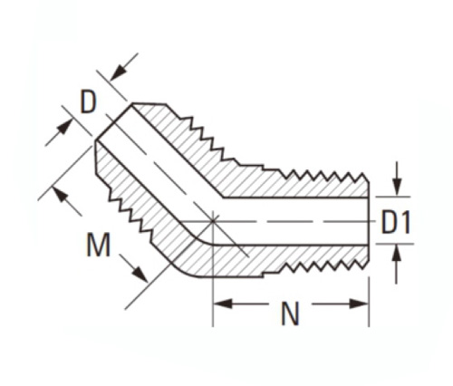 Jedná se o mosaznou mosazi SAE 45 °, která má kovaný 45 ° samčí loket. Funkční požadavky SAE J512 a J513 jsou touto vhodností splněny, zatímco použití dlouhé matice snižuje vibrace s použitím.