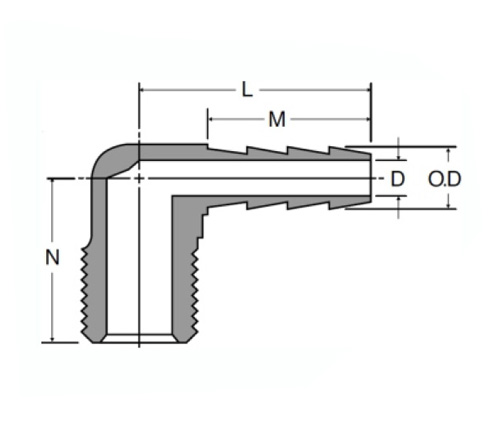 Konektor samčí potrubí 90 ° loket na hadicovou barb. Fluorokarbonové O-kroužky zajišťují hladký provoz s gumovou hadicí a měří 2,00 "(51 mm) i.d. x 1,50" (38 mm) o.d..Tato lokte je konstruován z vysoce kvalitních, mosazných materiálů a přichází s opakovaně použitelným O-kroužkem. Ohyb 90 stupňů umožňuje plynulé přechody mezi trubkami. K dispozici v přímém mužském potrubí, ženském závity SAE a metrické nití.