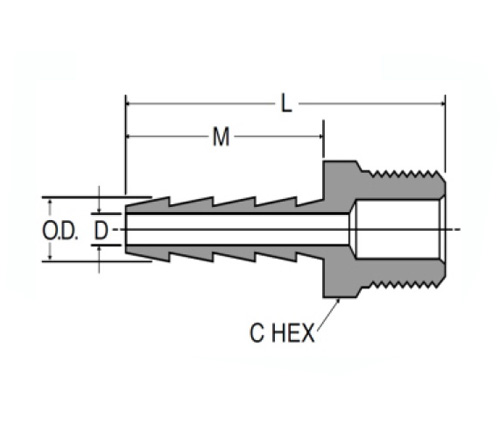 125 hadicová trubka k mužskému potrubí má mosazné tělo a fluorokarbonové O-kroužky. Má konec mužského potrubí, přímá vlákna NPT a odrůdu metrických vláken. Tento produkt je kompatibilní s gumovou hadicí a hadicí GPH.